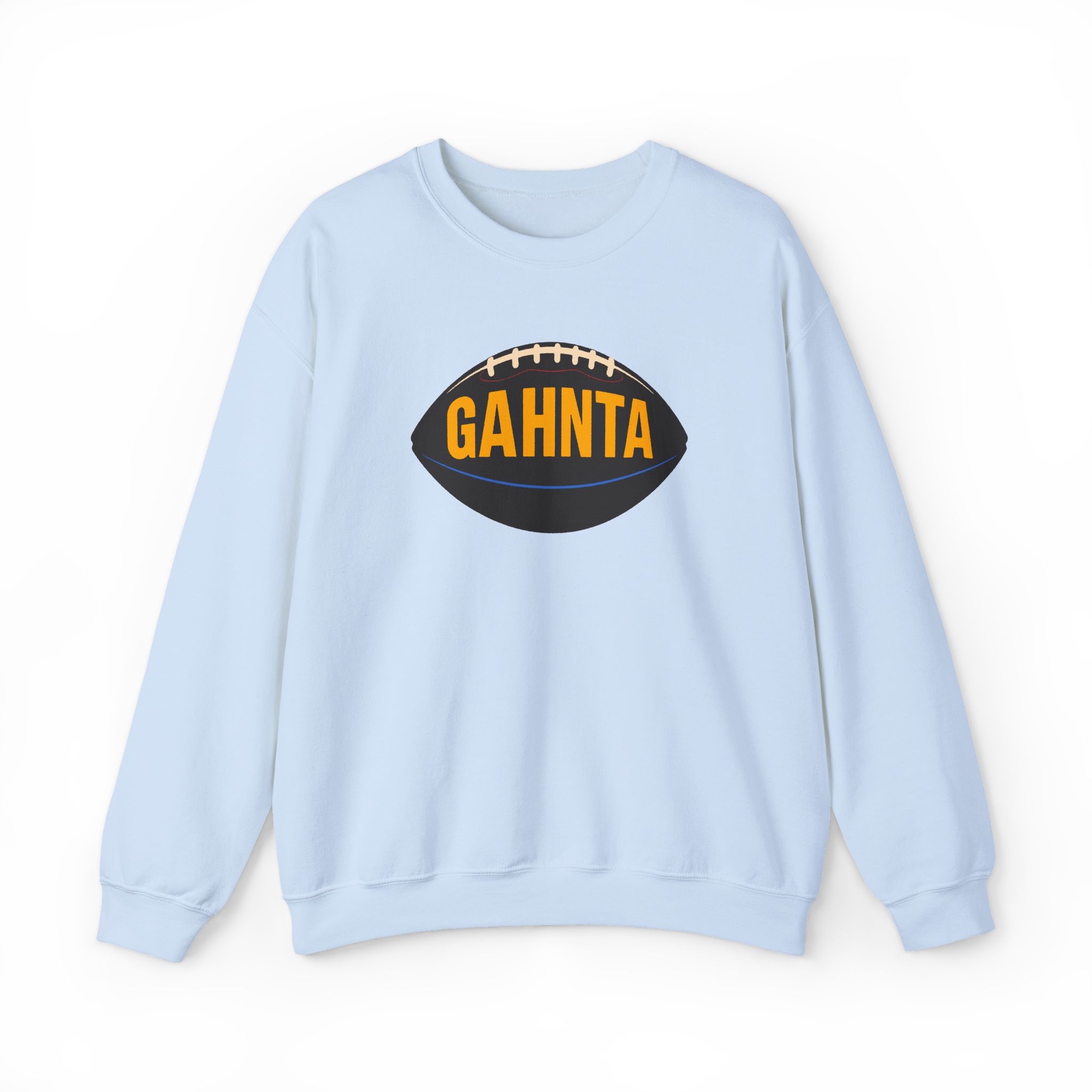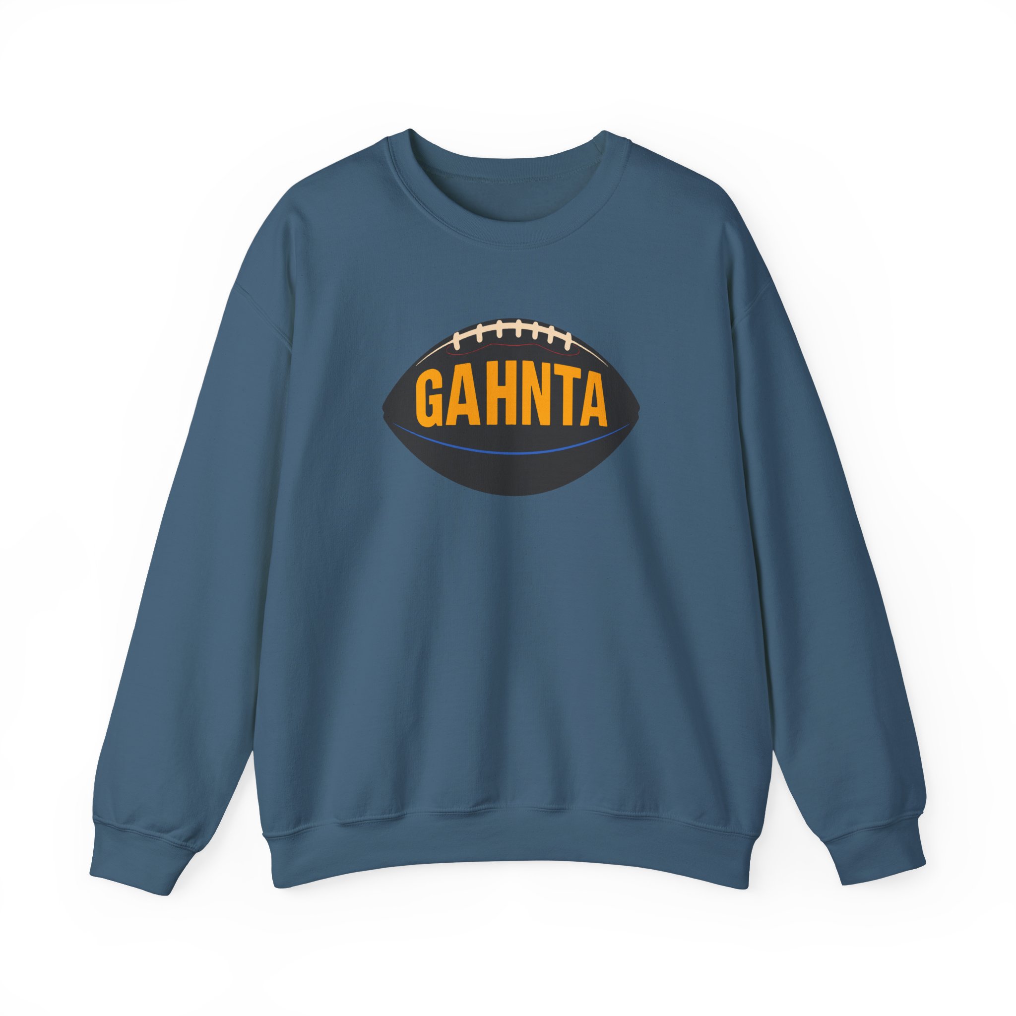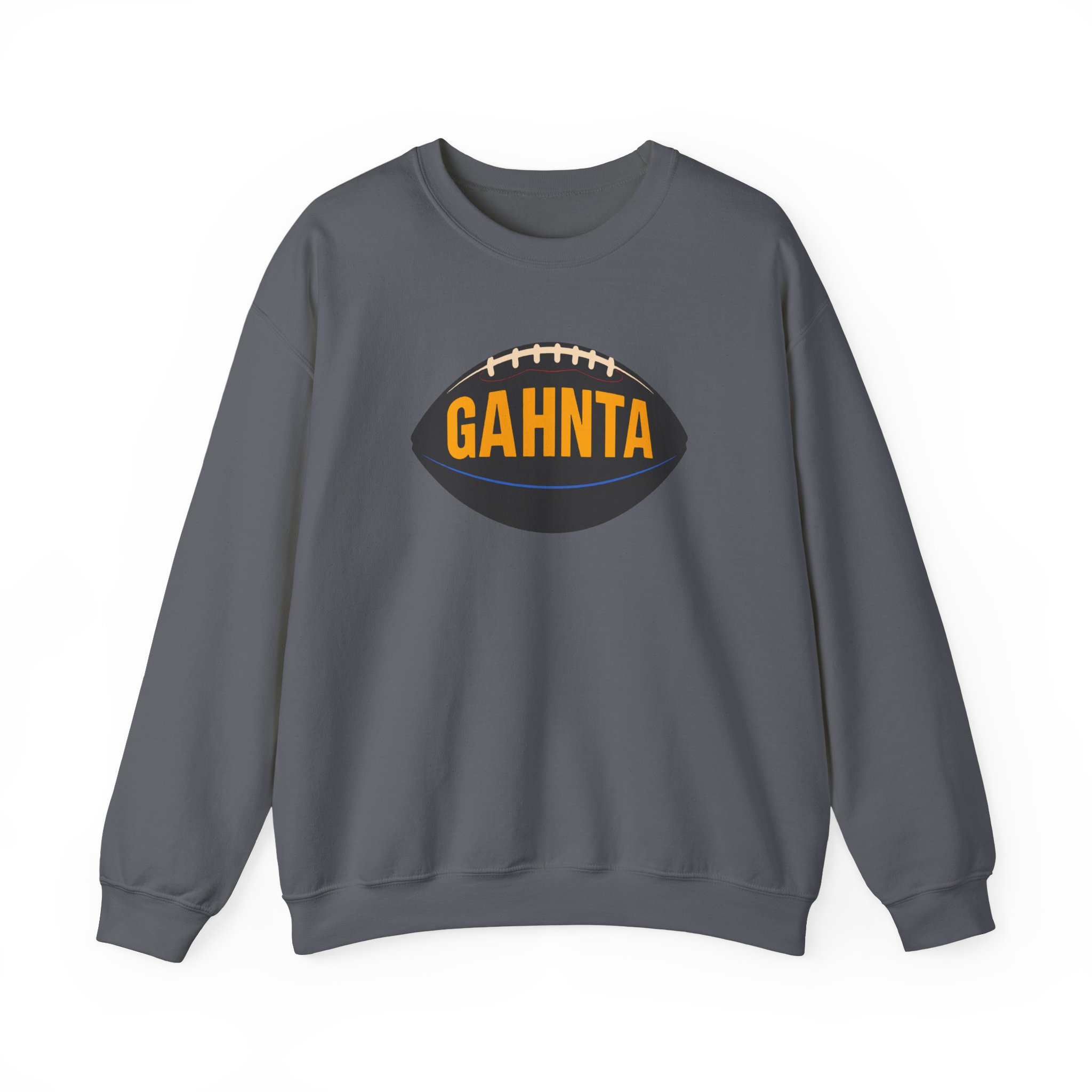 The GAHNTA Football Vintage Sweatshirt combines warmth, comfort, and Pittsburgh pride in a timeless design. Made from soft midweight fabric, this sweatshirt is perfect for cool mornings, casual outings, or cheering on your favorite local team. Bold football logo with GAHNTA lettering across the chest celebrates Yinzer culture, giving each piece a subtle vintage vibe that feels instantly familiar.